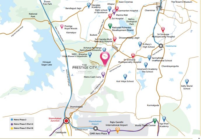 The Prestige City Hyderabad is strategically located in a prime area that offers easy access to major business hubs, educational institutions, healthcare facilities, and entertainment zones. This prime location ensures that residents are always close to essential services and amenities.